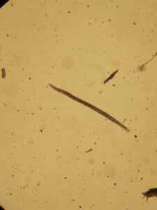 Nematoide Pratylenchus em microscopia – (Imagem enviada pela pesquisadora Karoline Gunther).