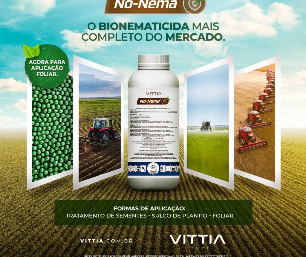 Em um momento em que os nematoides presentes no solo brasileiro afetam diversas culturas com prejuízos aproximados de R$ 35 bilhões por ano, de acordo com a Sociedade Brasileira de Nematologia (SBN), o agricultor passa a contar com um importante aliado para o controle efetivo de nematoides com múltiplas formas de aplicação. Trata-se do No-Nema, do Vittia, um nematicida e fungicida biológico altamente eficaz no manejo de fitonematoides, além de controlar fungos que causam podridão de raiz.